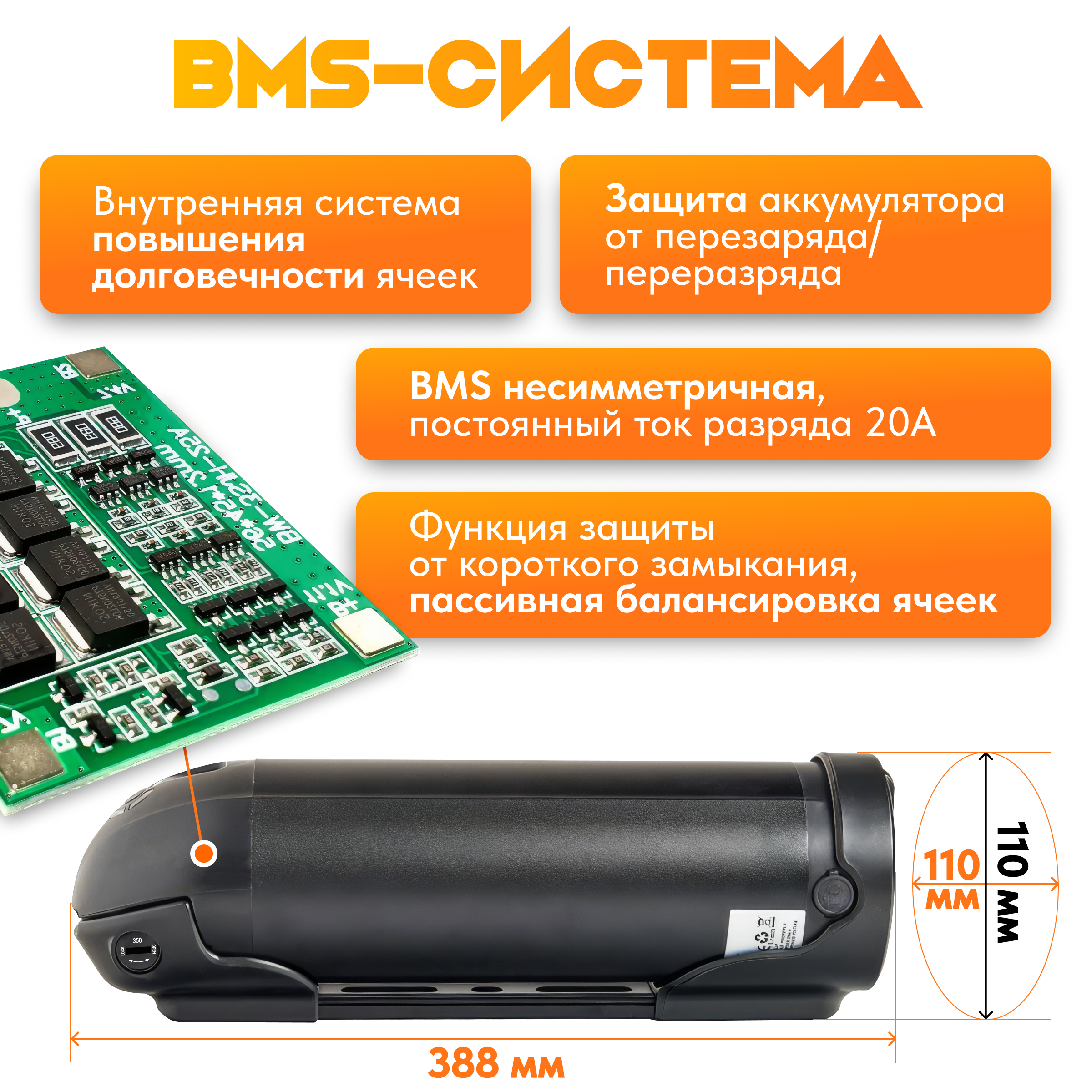 Диаметр алюминиевого корпуса 90 мм.Заводская гарантия на все аккумуляторы составляет 1 год. Фактический срок службы зависит от соблюдения правильной эксплуатации и составляет в среднем 3-5 лет. После 1000 циклов разряда/заряда емкость аккумулятора составит около 85% от изначальной. 1000 циклов - это очень много. Даже при ежедневной эксплуатации понадобится около 3 лет, чтобы набрать 1000 циклов заряда/разряда. После этого периода у вас останется еще 85% оставшейся емкости аккумулятора.