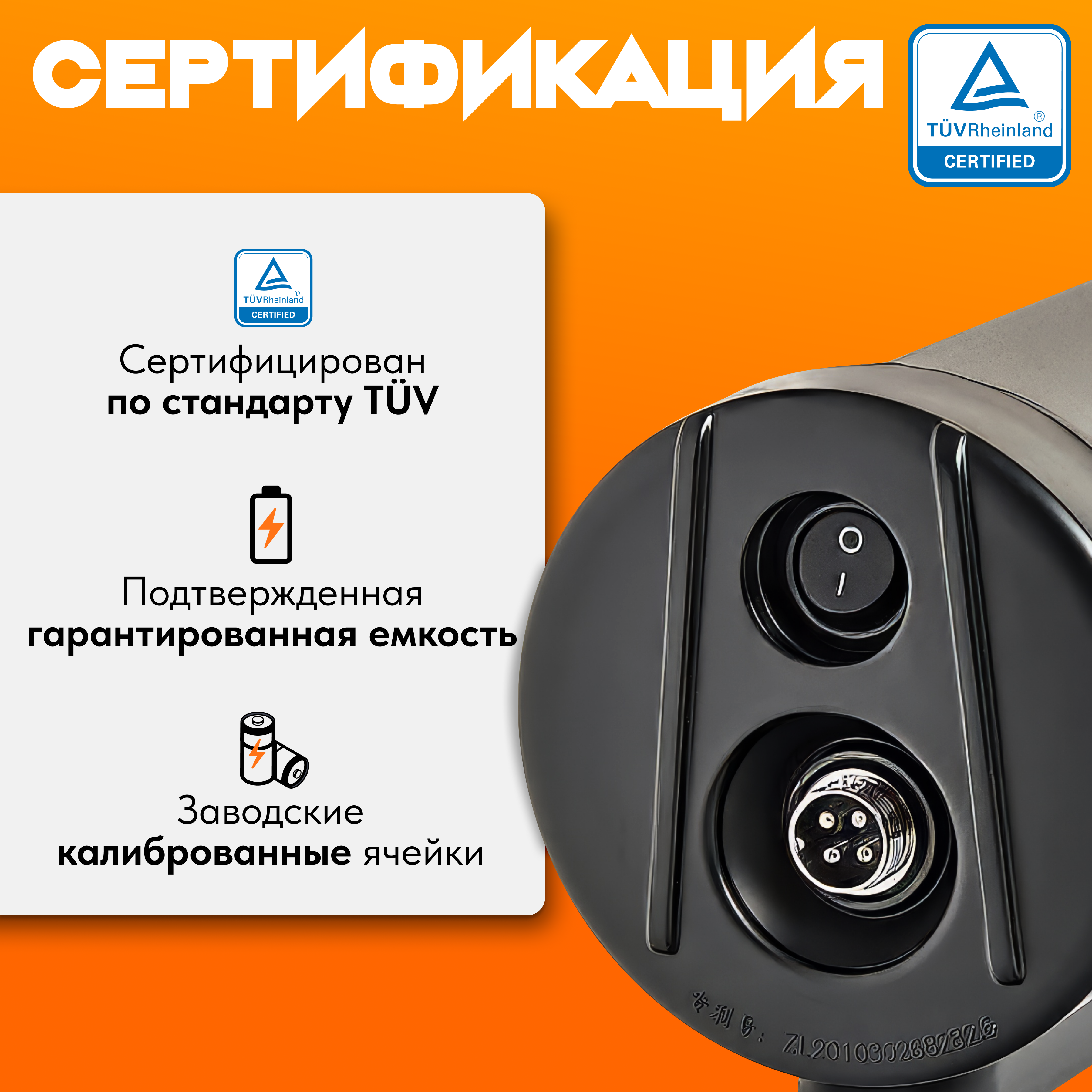 На корпусе имеется защитный замок для предотвращения кражи, в комплекте идут два ключа от замка. Вверху батареи имеется светодиодный индикатор заряда. Чтобы узнать оставшийся заряд, нужно нажать на кнопку. При заряженном аккумуляторе горят все светодиоды, и красный и зеленые, а при севшем аккумуляторе горит только красный светодиод.
