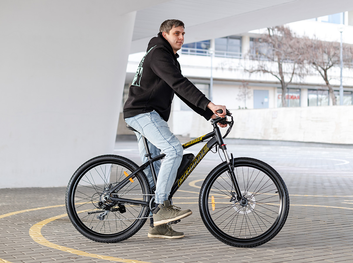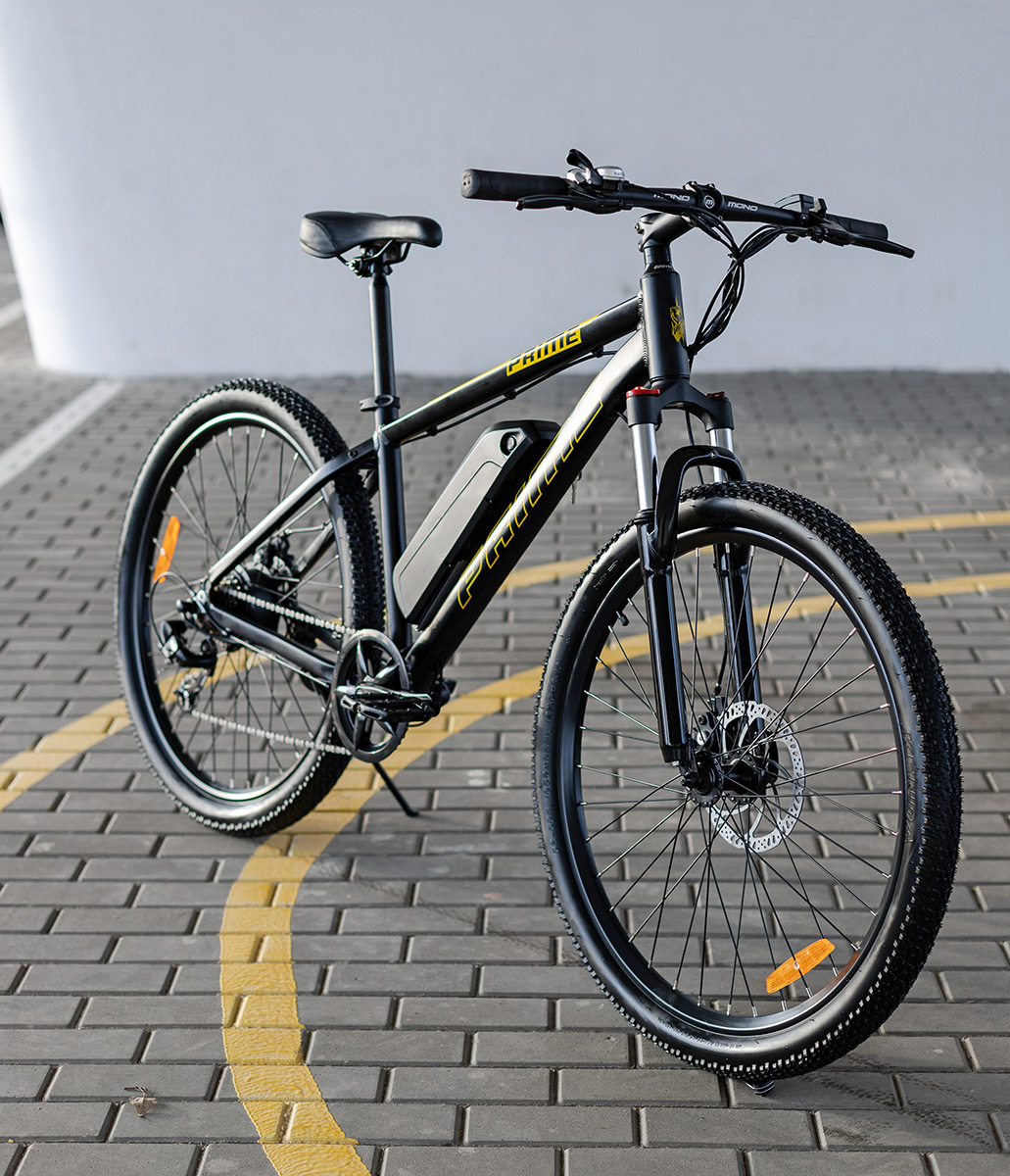 Рама электровелосипеда выполнена из алюминия , это дает легкость и прочность конструкции, и возможность выдерживать до 120 кг веса . Сам же Prime весит 22 кг, а диаметр колеса составляет 27,5". Очень практичная модель, подойдет как мужчинам, так женщинам всех возрастов.