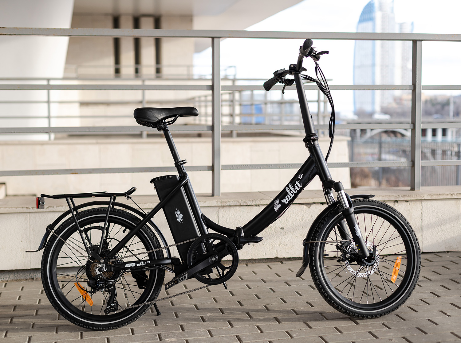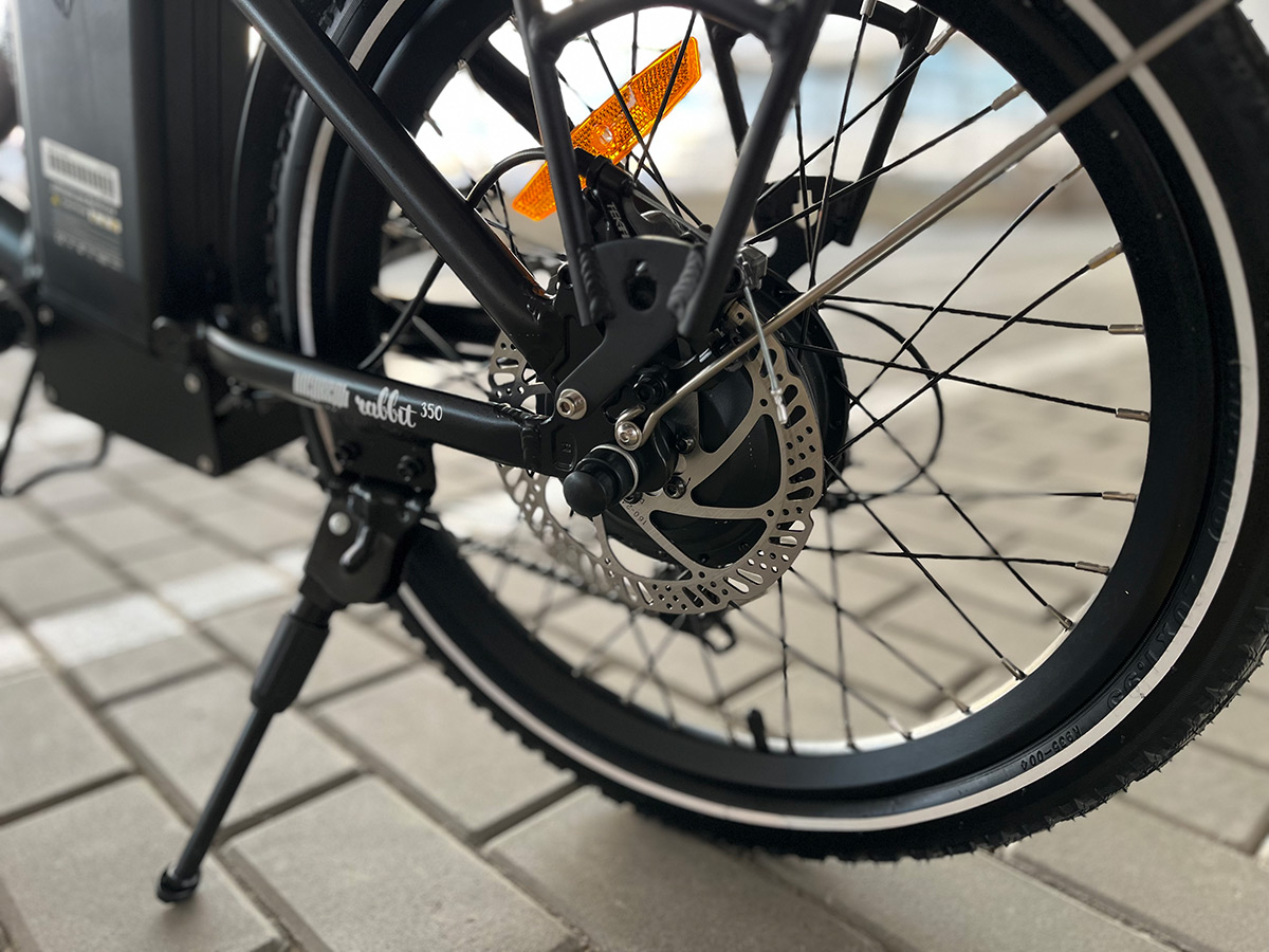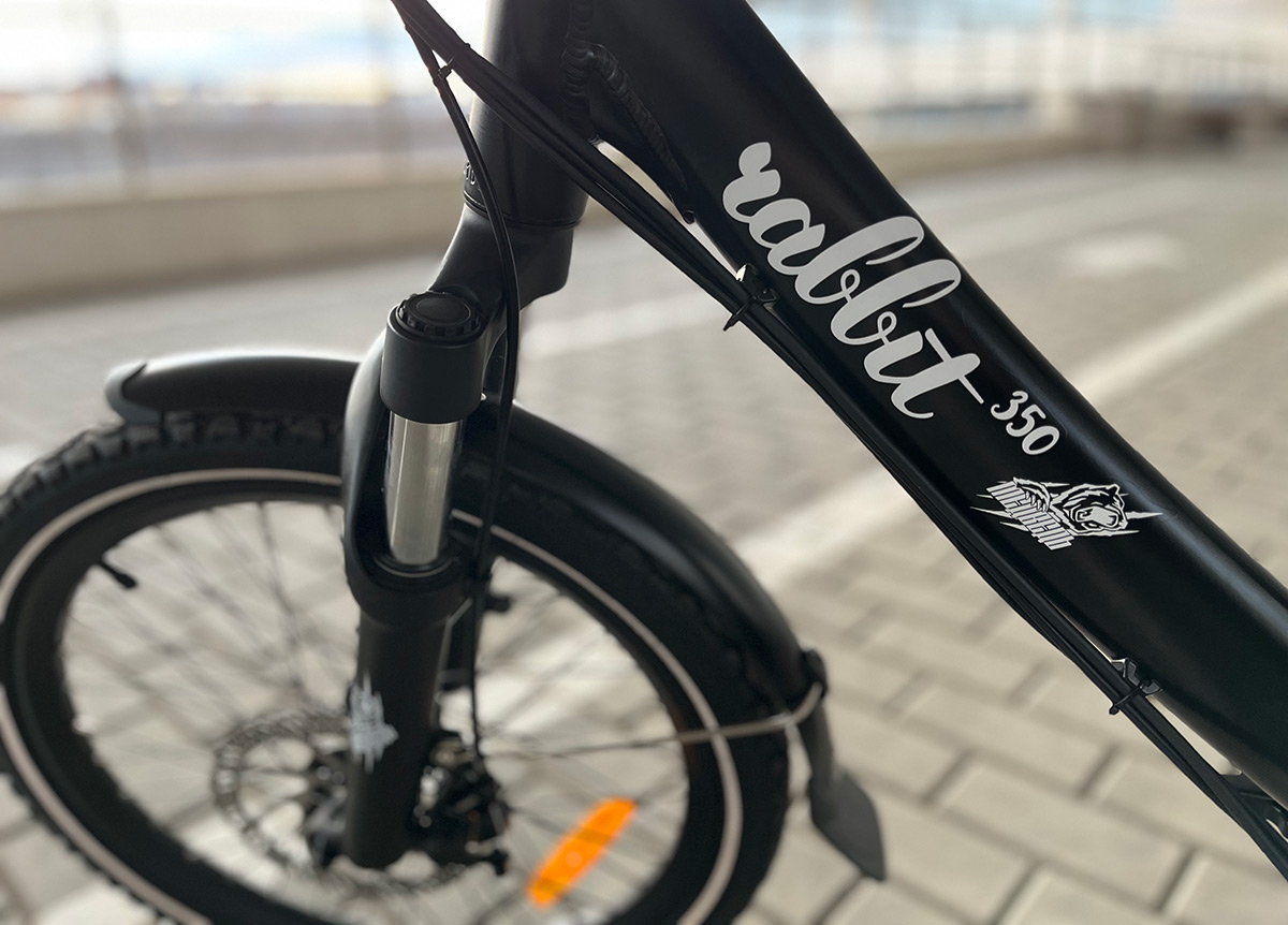Rabbit оснащен качественным навесным оборудованием - скоростная трансмиссия с широким диапазоном передач от Shimano, усиленная передняя вилка с увеличенными диаметрами штоков, и дисковыми тормозами мирового бренда Tektro, что важно для безопасного управления в городе.