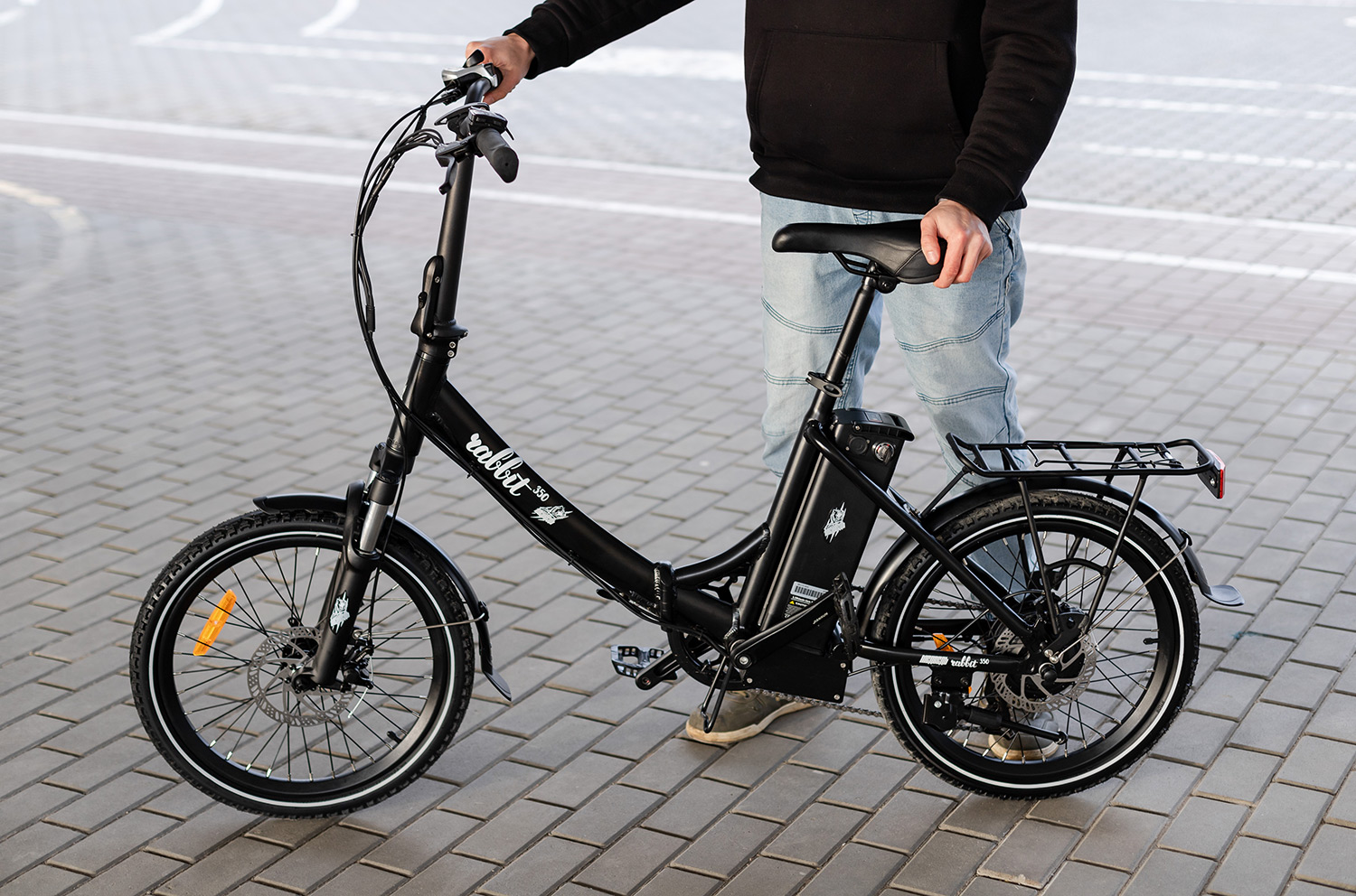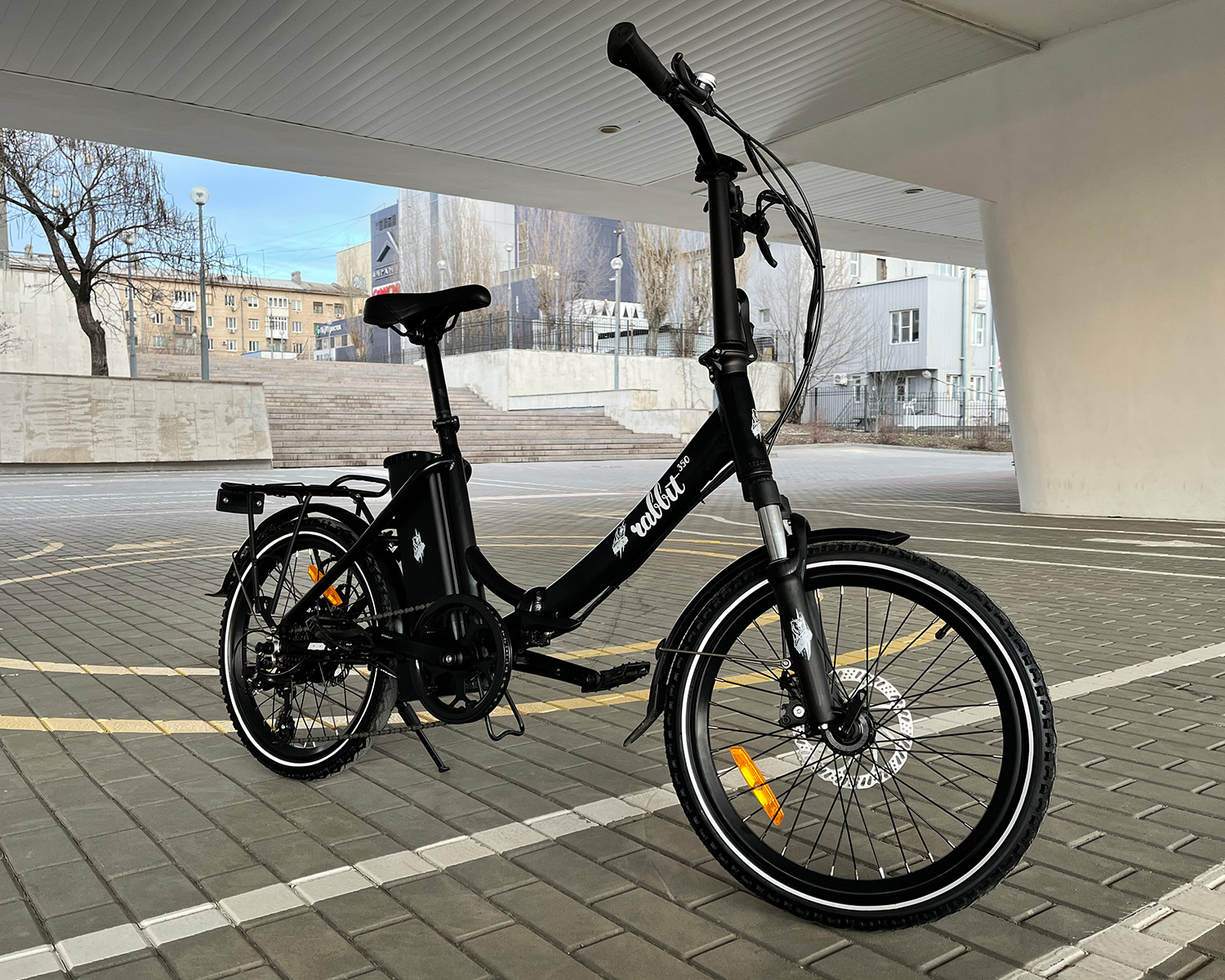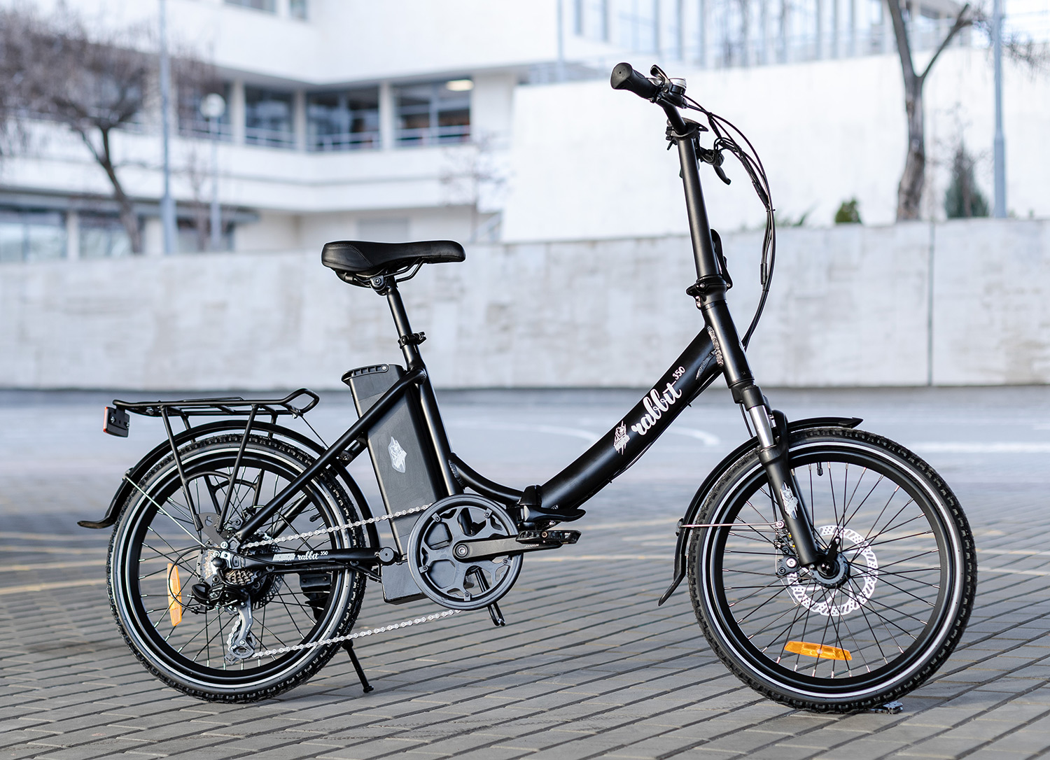 Rabbit оснащен качественным навесным оборудованием - скоростная трансмиссия с широким диапазоном передач от Shimano, усиленная передняя вилка с увеличенными диаметрами штоков, и дисковыми тормозами мирового бренда Tektro, что важно для безопасного управления в городе.