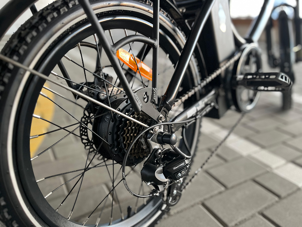 Установлено экономичное и очень тяговитое редукторное мотор-колесо, мощностью 350 ватт с крайне высоким КПД.