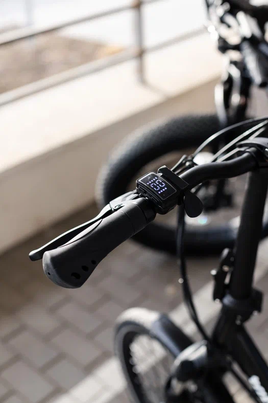 Установленная панель управления позволяет включать/выключать электровелосипед, выбирать режим помощника (PAS), следить за зарядом батареи и управлять освещением.