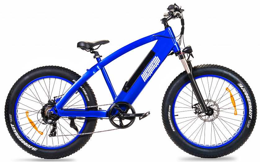 Данный фэтбайк отличается алюминиевой рамой повышенной жесткости, что придает велосипеду уверенность при прохождении поворотов на высоких скоростях. Аккумулятор размещен в специальном ложементе расположенном в нижней части рамы. Это снижает центр тяжести и повышает эргономичность велосипеда в целом. Аккумуляторная батарея собрана из Li-ION элементов формата 18650 позволяет велосипеду преодолевать расстояния до 50 км .Также стоит отметить, что аккумулятор защищен специальным замком, который надежно фиксирует батарею в раме и защищает ее от кражи.
