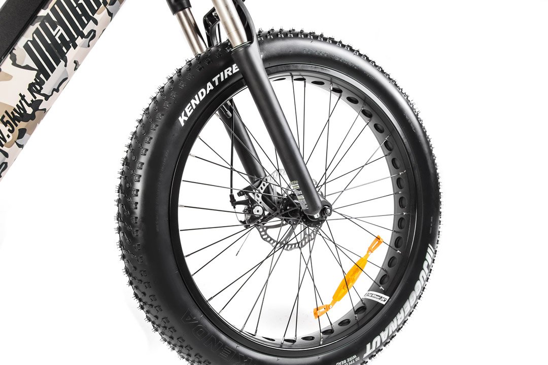 - Широкие комфортные шины фэтбайка, можно использовать одинаково эффективно в городе и на бездорожье.