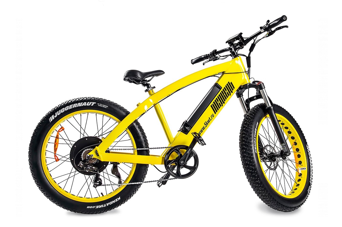 Данный фэтбайк отличается алюминиевой рамой повышенной жесткости, что придает велосипеду уверенность при прохождении поворотов на высоких скоростях. Аккумулятор размещен в специальном ложементе расположенном в нижней части рамы. Это снижает центр тяжести и повышает эргономичность велосипеда в целом. Аккумуляторная батарея собрана из Li-ION элементов формата 18650 позволяет велосипеду преодолевать расстояния до 50 км .Также стоит отметить, что аккумулятор защищен специальным замком, который надежно фиксирует батарею в раме и защищает ее от кражи.