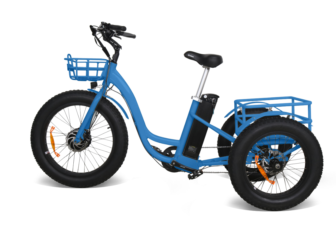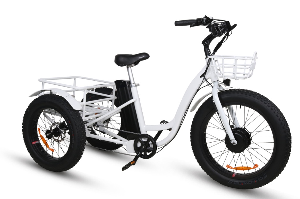 Трёхколёсный электрический фэтбайк Медведь FatTruck 500 собран на раме из алюминиевого сплава, оснащён 7-скоростной трансмиссией, механическими дисковыми тормозами и способен выдержать нагрузку до 150 кг. Благодаря двум крепким багажникам, он отлично подходит для перевозки грузов. Широкие колёса низкого давления диаметром 24” и 20” обеспечивают высокую проходимость и необходимую плавность хода. Расположенная на руле панель управления позволяет не только просматривать все необходимые параметры поездки (скорость, время, расстояние), но и выбирать степень помощи двигателя при педалировании.