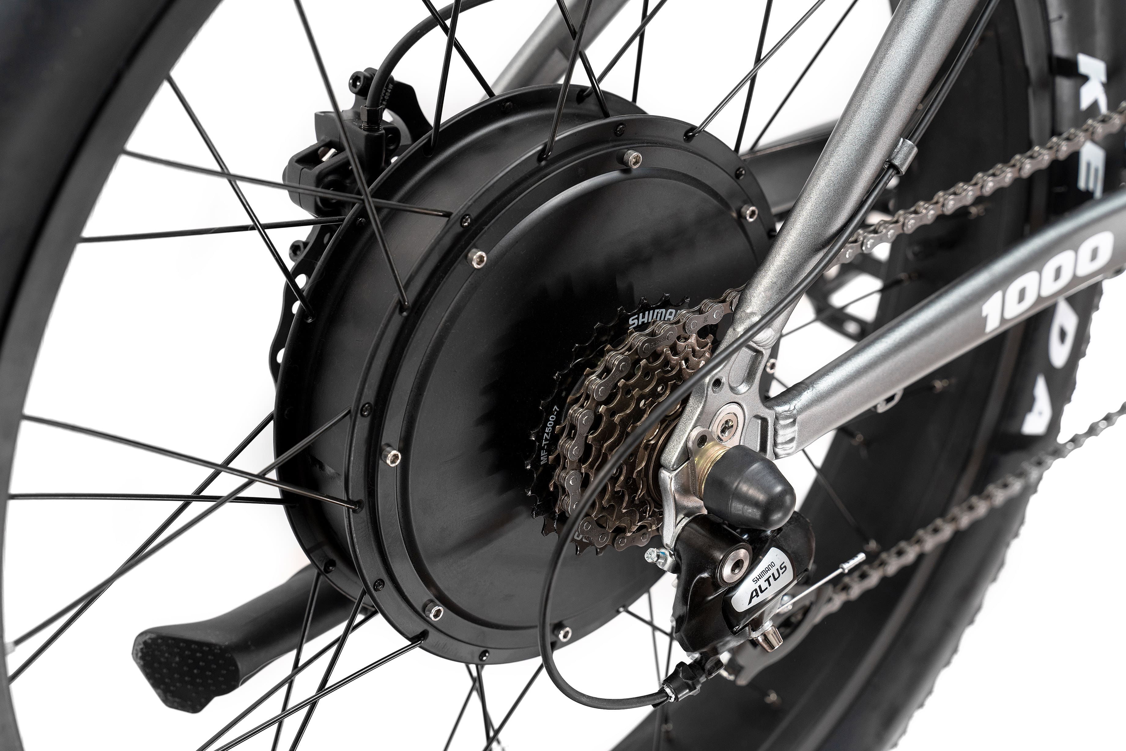 Двигатель прямого привода мощностью 1000 Вт способен разгонять велосипед до 55 км/ч. Отсутствие редуктора и простота конструкции делают его крайне надёжным - при правильной эксплуатации он обладает практически неограниченным сроком службы.