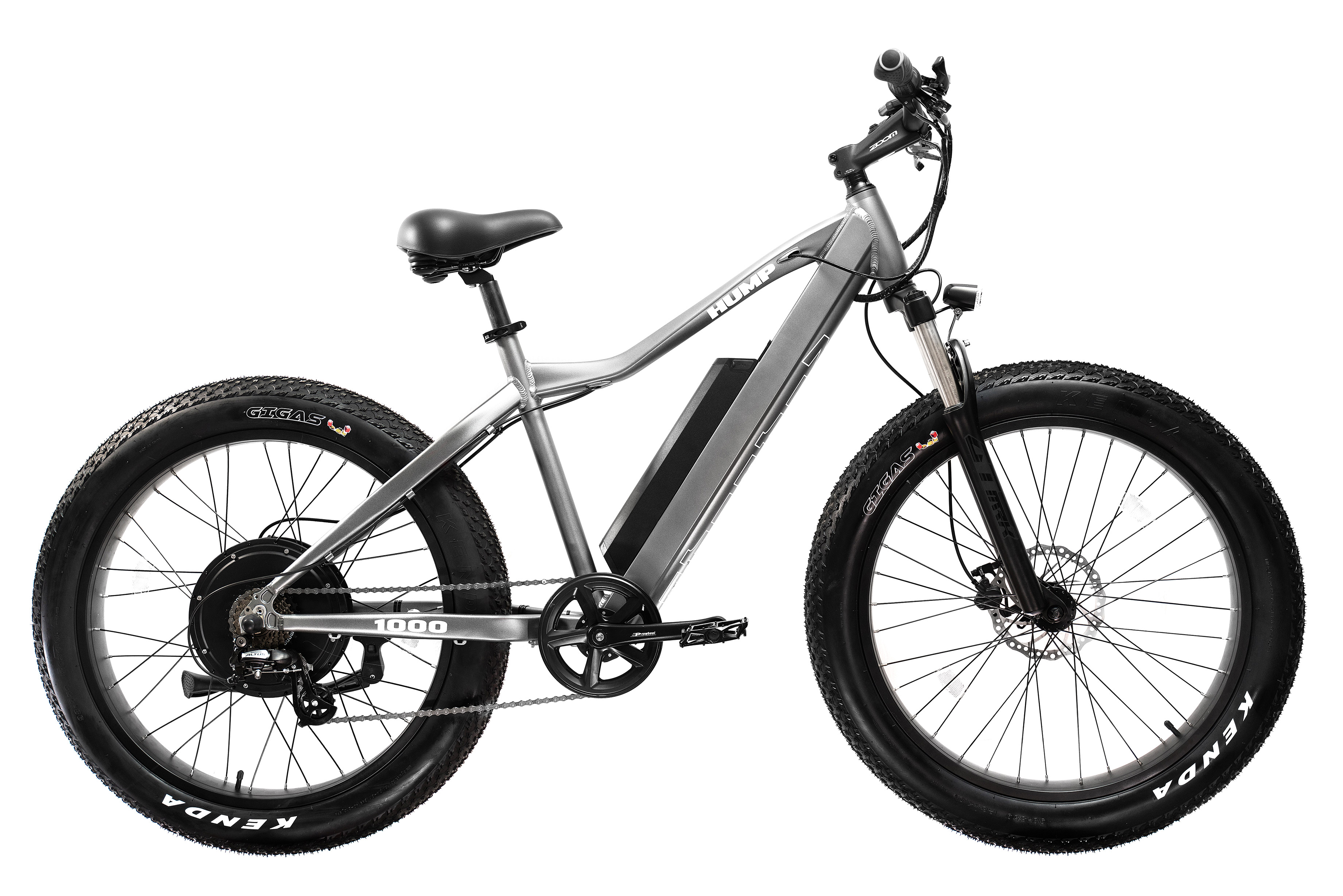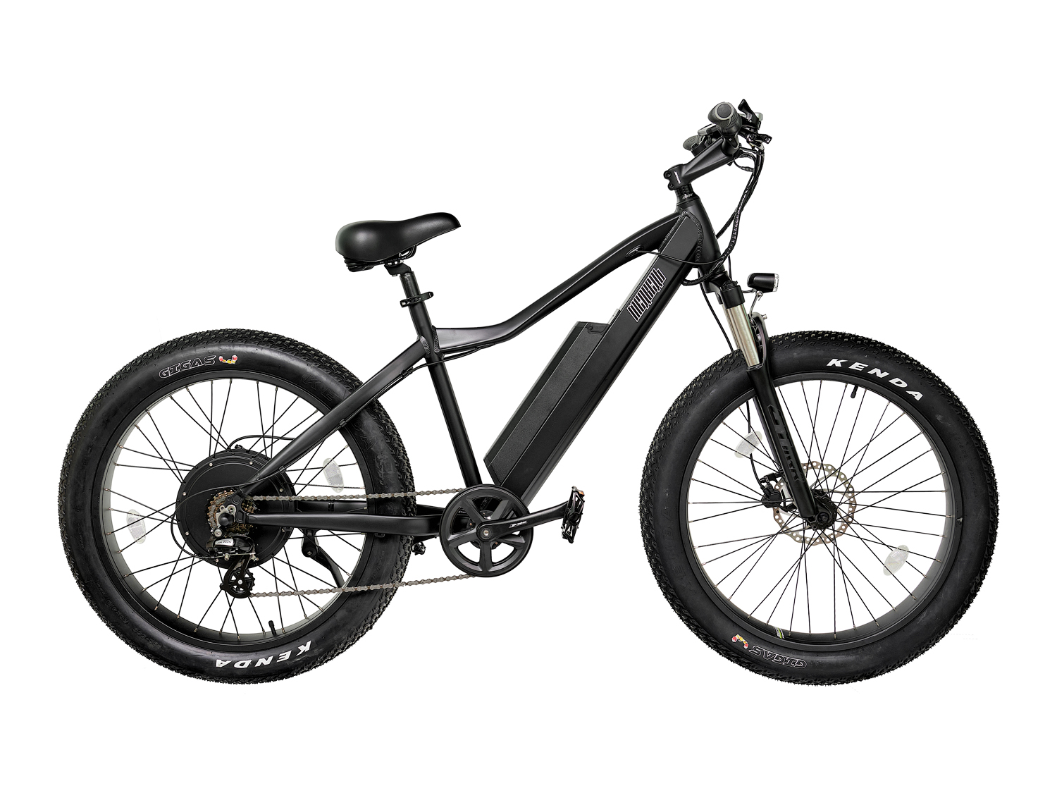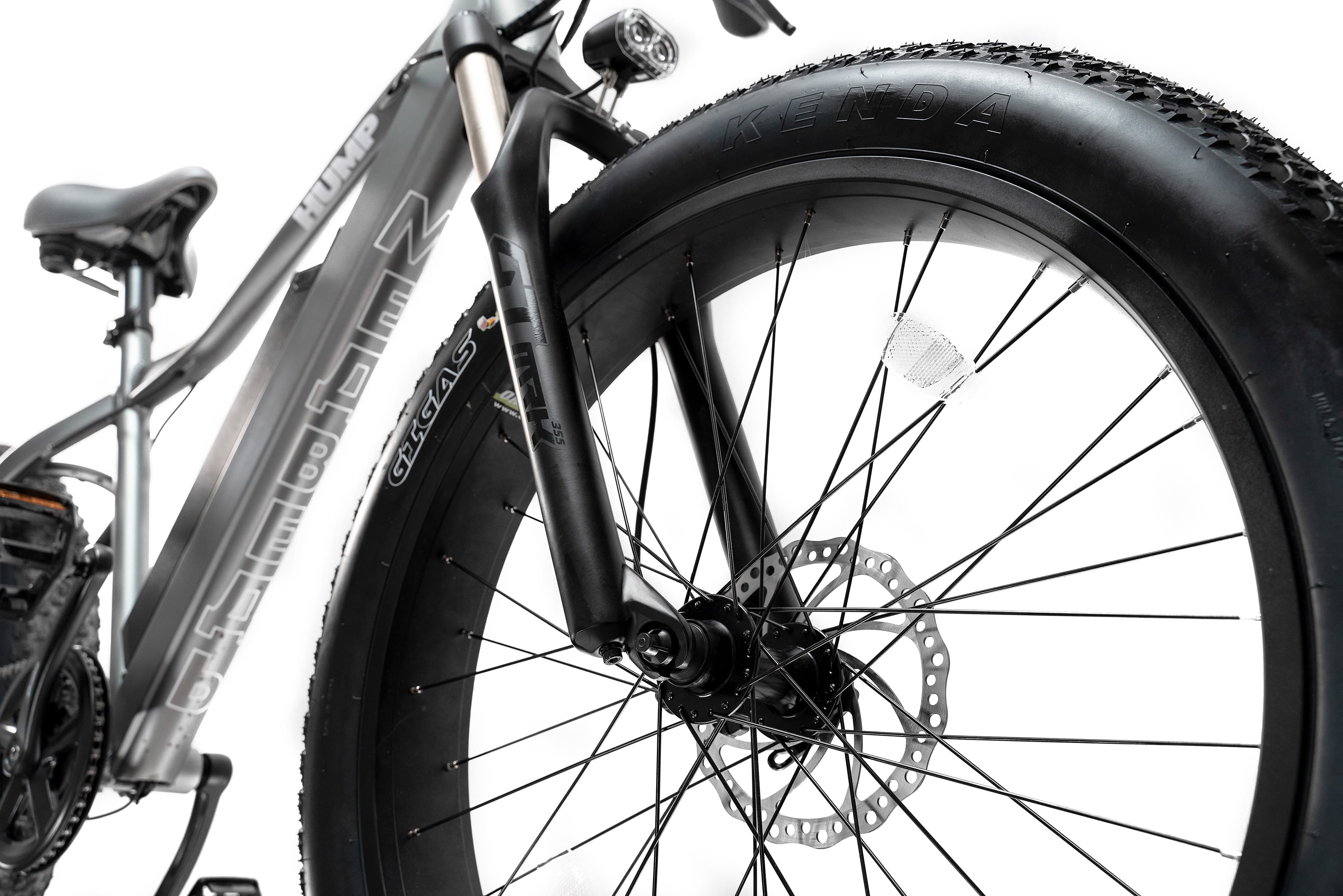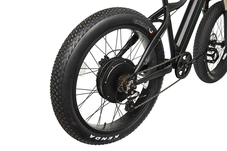 Широкие покрышки низкого давления Kenda Gigas диаметром 26” и шириной 4” позволяют фэтбайку проезжать там, где велосипед на классических шинах застрянет - по рыхлому песку, снегу, мелкому щебню и мягкому грунту.