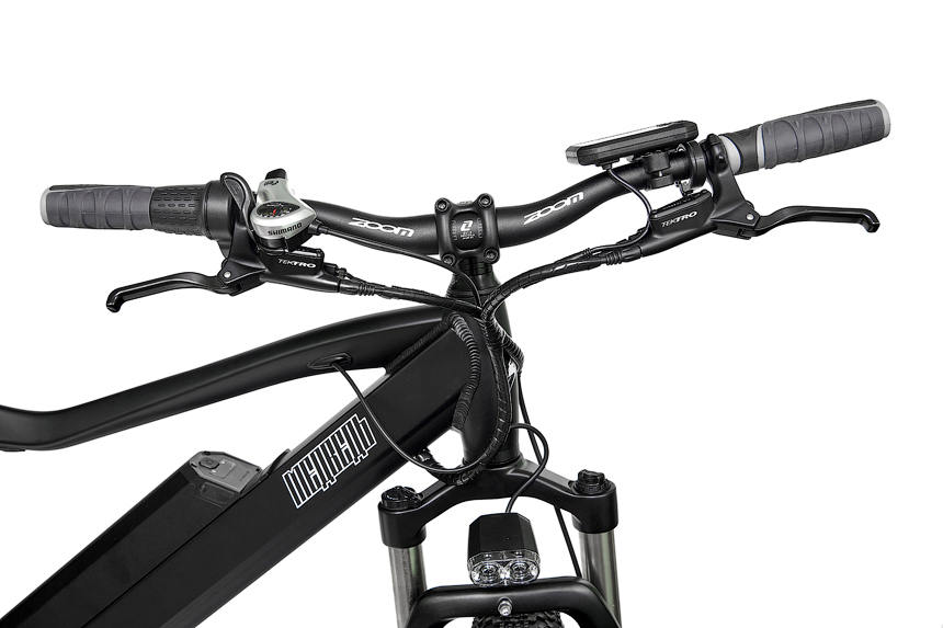 Литий-ионный аккумулятор на 48 В ёмкостью 14 Ач интегрирован в раму, но является съёмным. Он оснащён встроенным индикатором уровня заряда и USB-портом, который можно использовать для зарядки мобильных устройств. Энергоёмкость 672 Втч обеспечивает запас хода до 50 км, а полная зарядка батареи занимает около 6 часов.