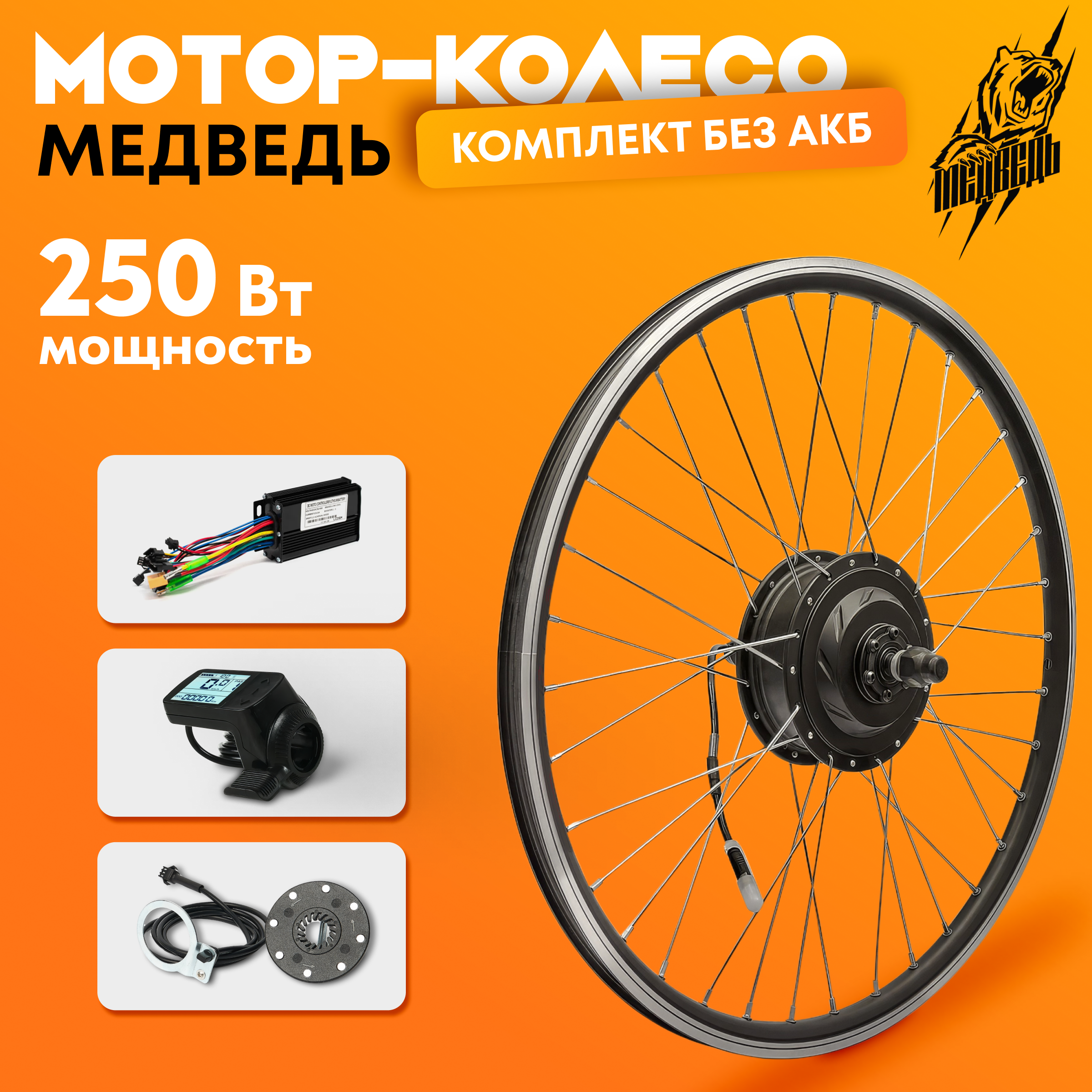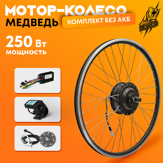 - Заспицованное мотор-колесо мощностью 250Вт с двойным усиленным ободом из алюминиевого сплава, диаметр выбирается Вами, от 20 до 29 дюймов;