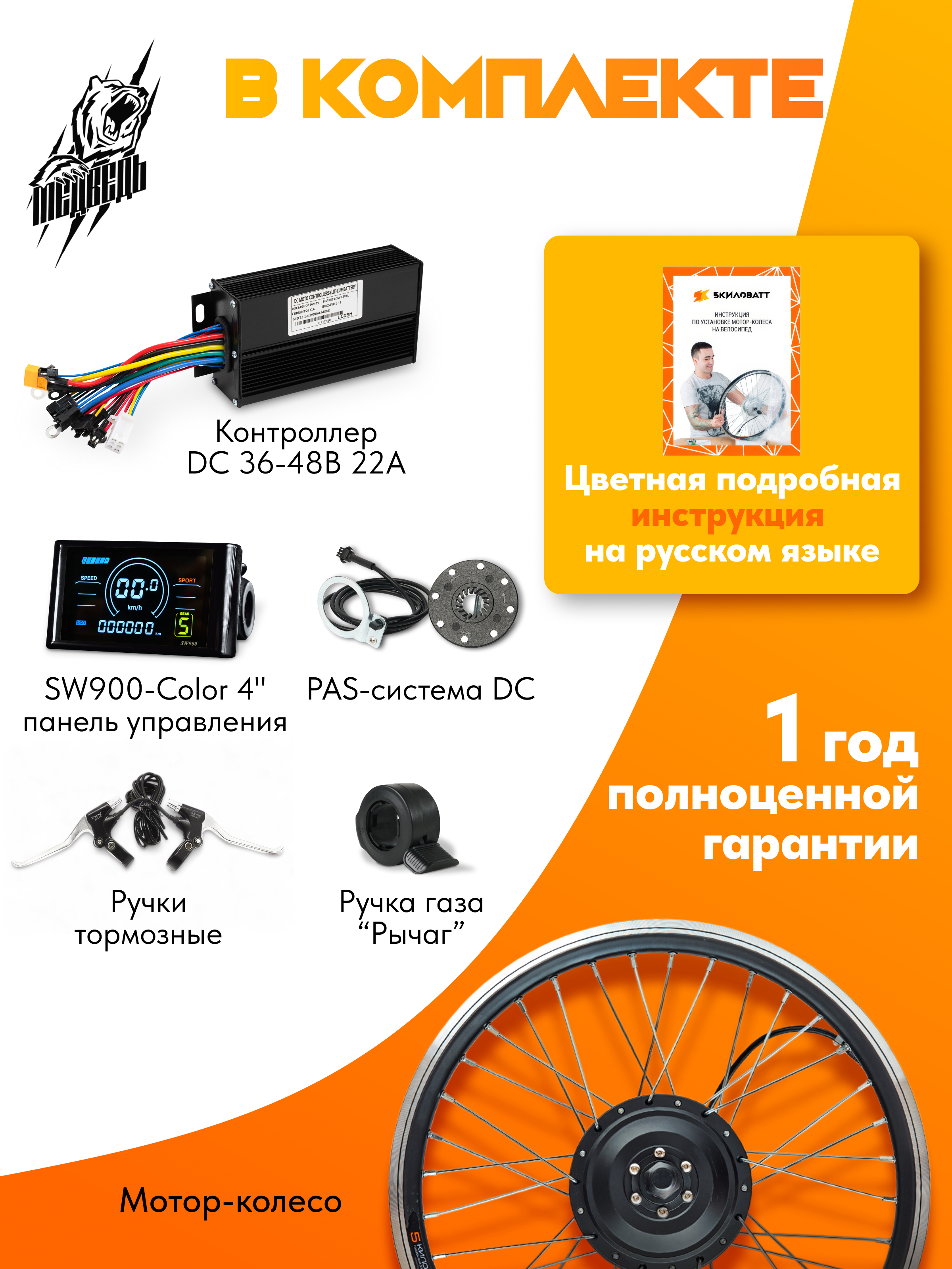 - Панель управления - LCD SW900 с индикацией уровня заряда АКБ, выбором режимов мощности, отображения скорости, общего пробега и тд;