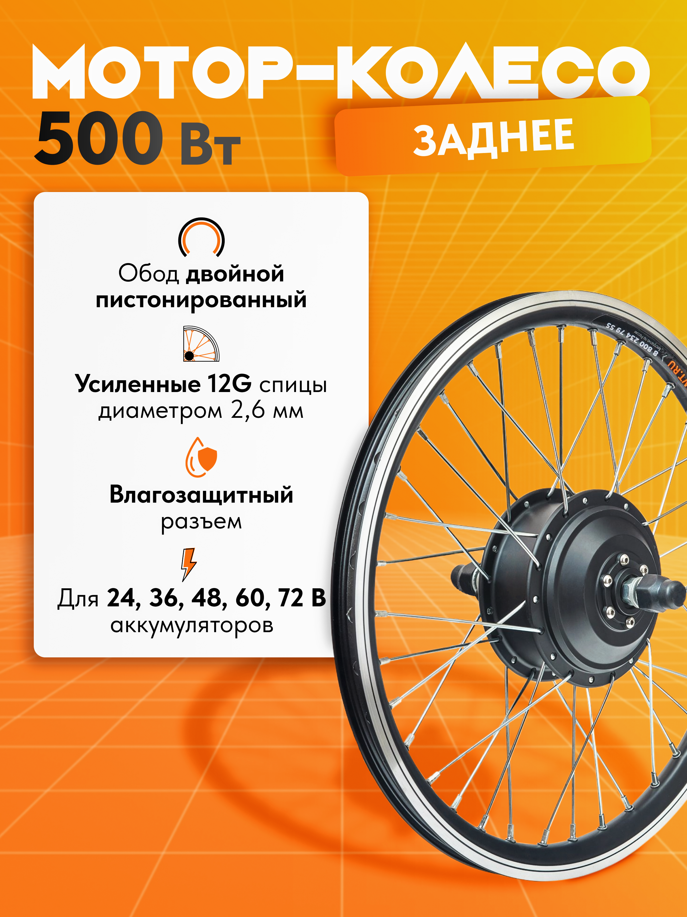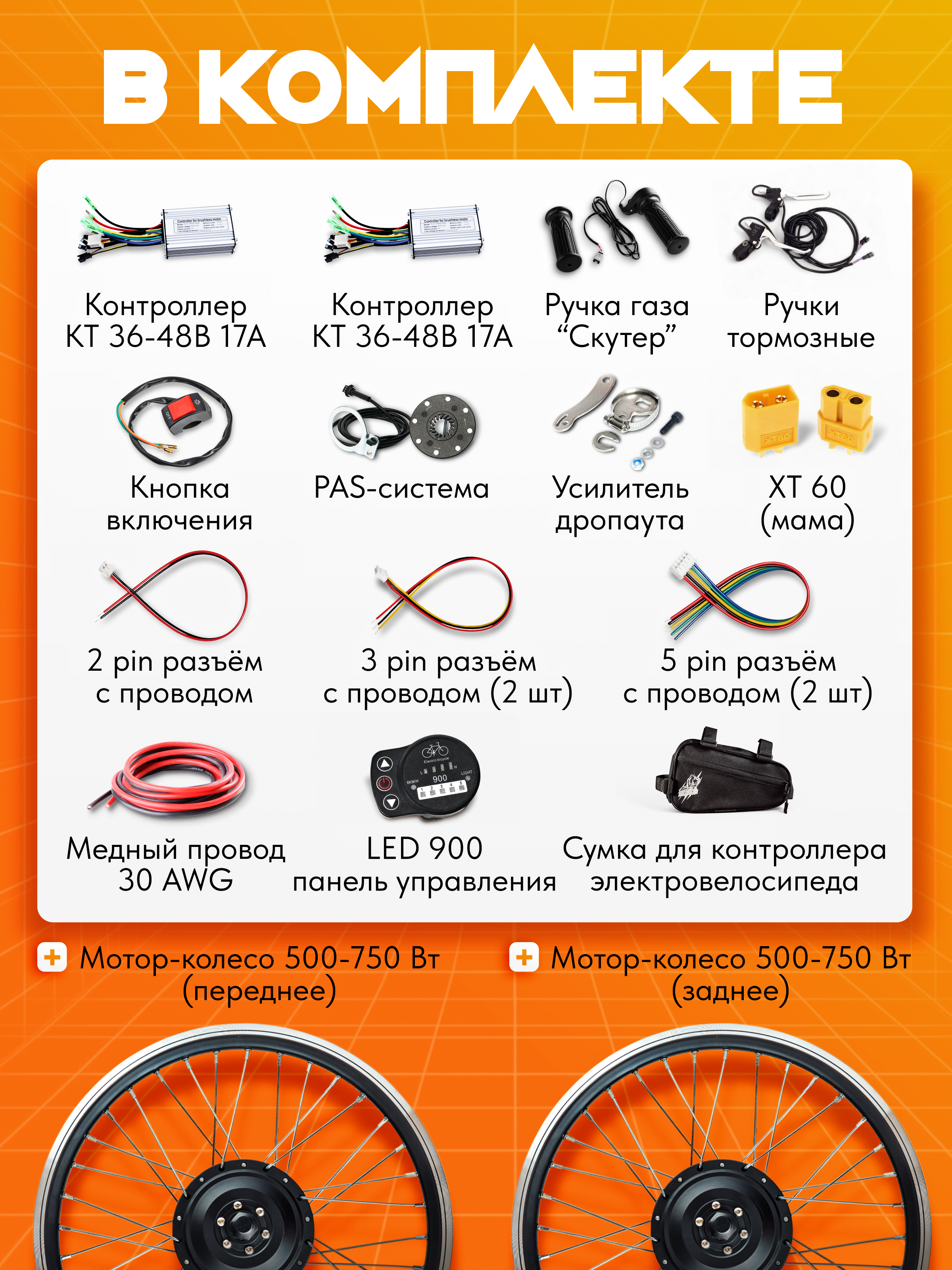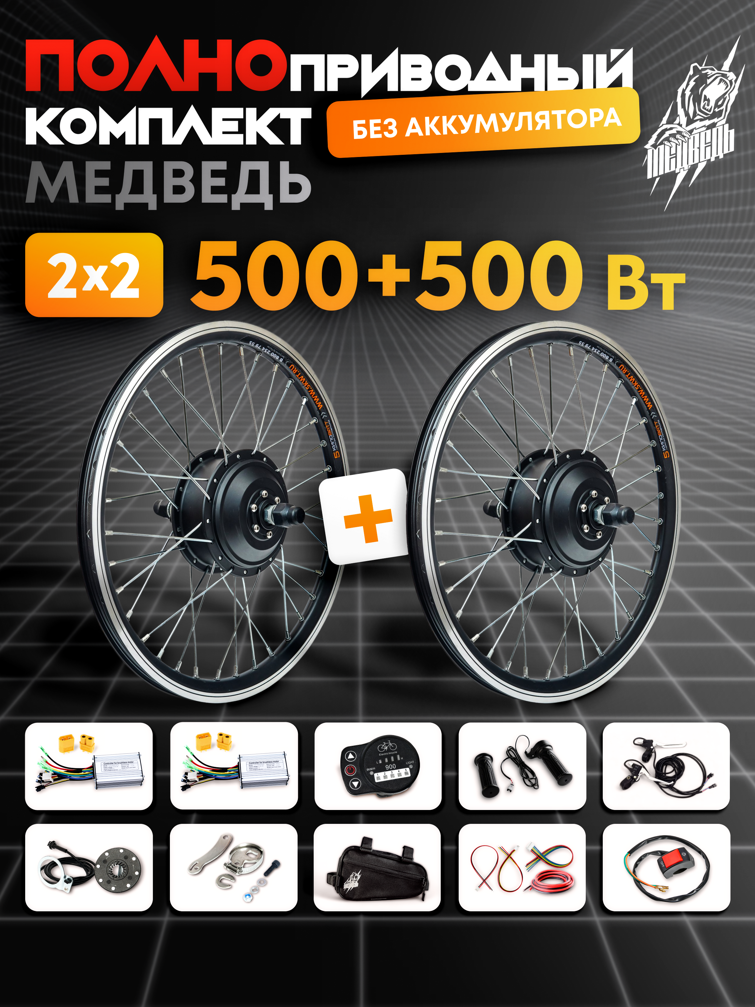 - Два мотор-колеса с двойным усиленным ободом из алюминиевого сплава шириной 4 дюйма - Заднее на 500Вт и Переднее на 500Вт;