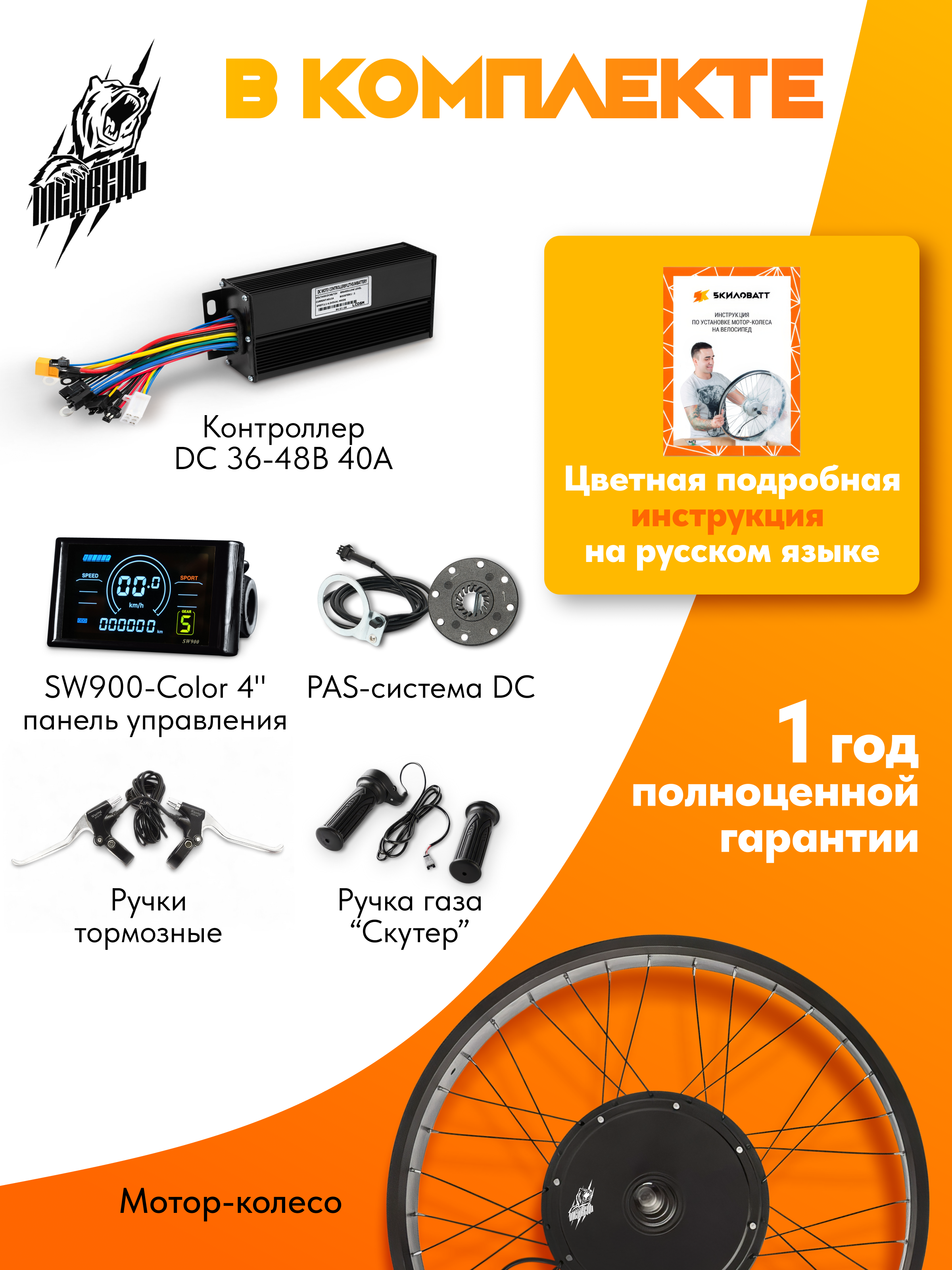 - Панель управления - LCD SW900 с индикацией уровня заряда АКБ, выбором режимов мощности, отображения скорости, общего пробега и тд;