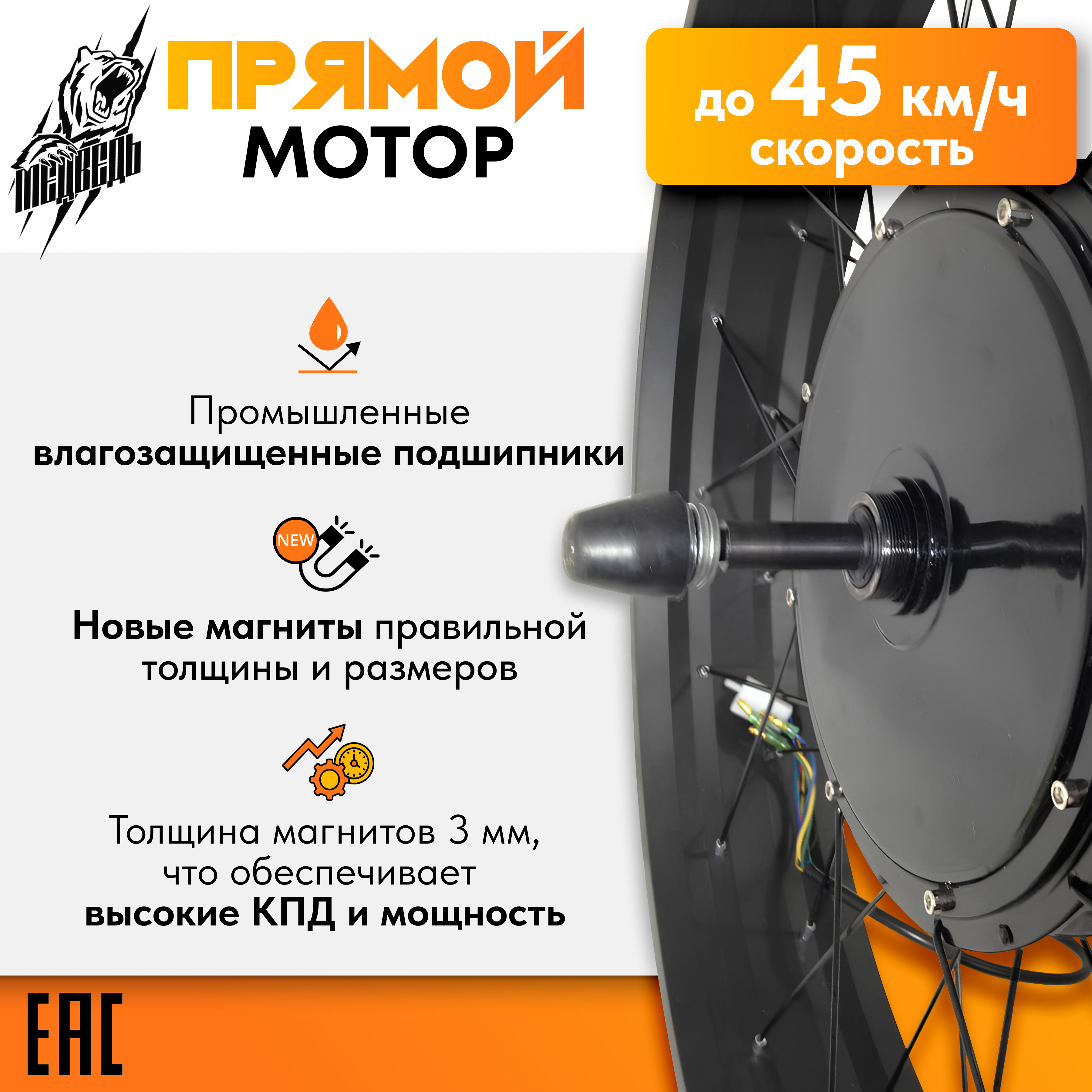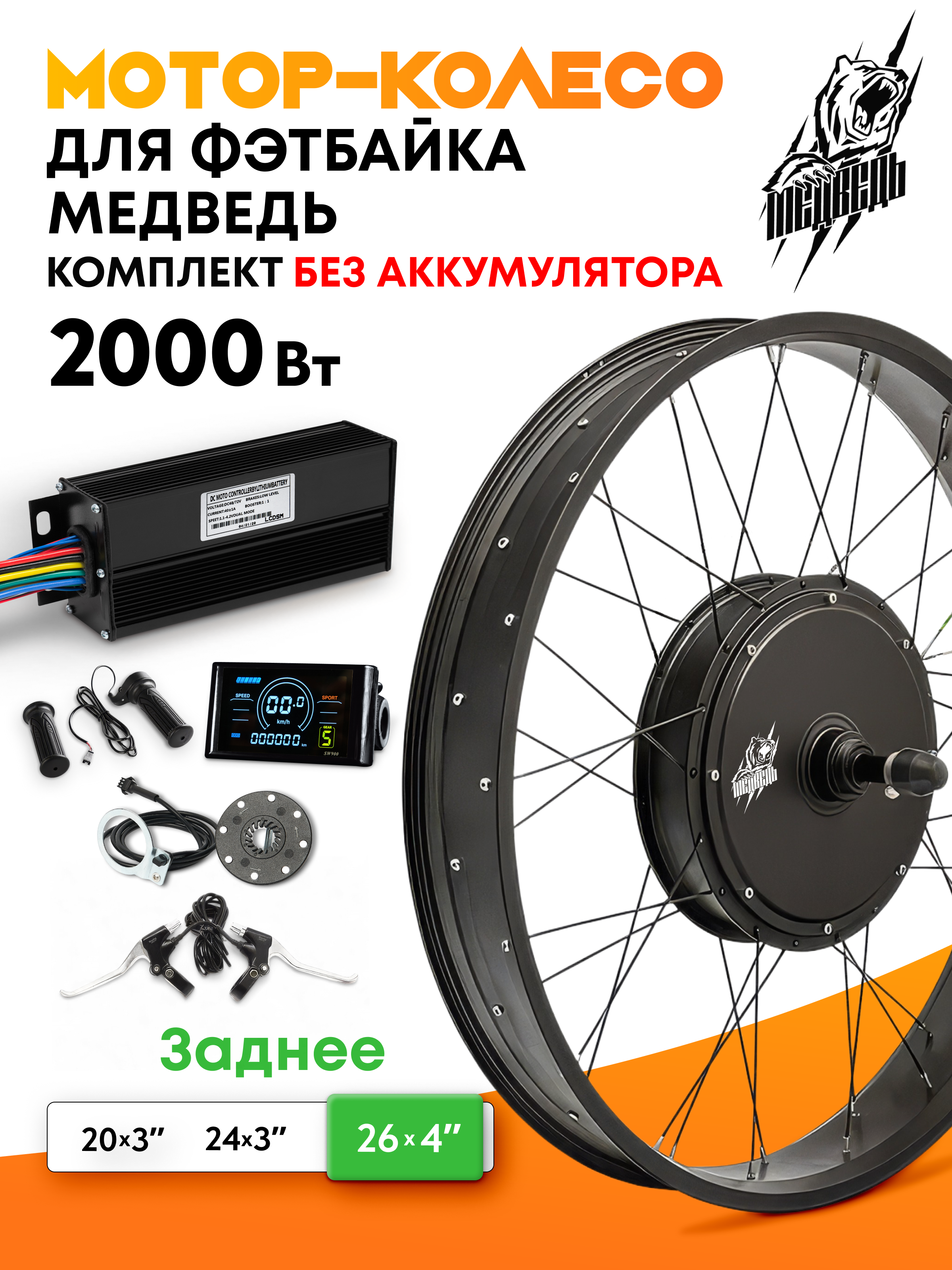 - Заспицованное мотор-колесо мощностью 2000Вт с ободом из алюминиевого сплава и пистонированными нипельными отверстиями;