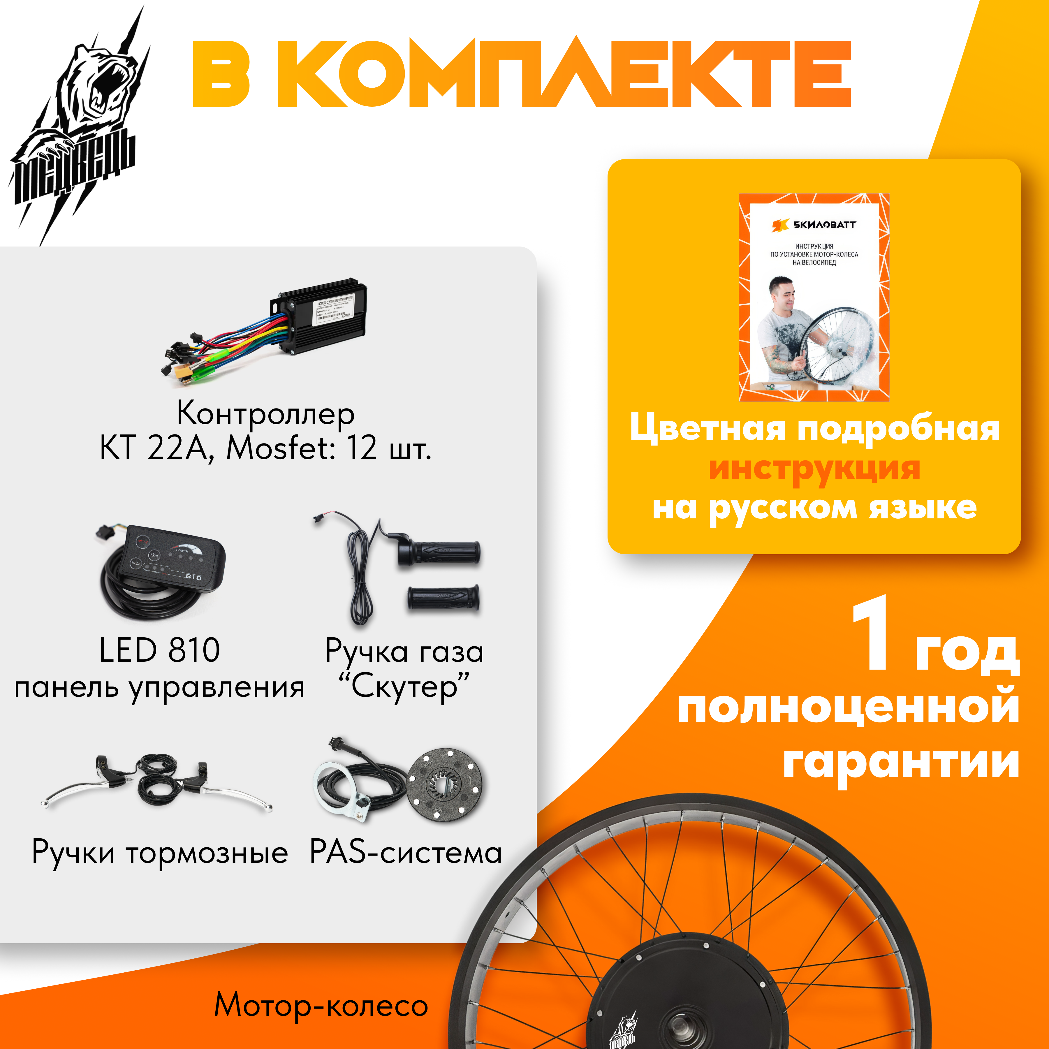 Система помощи педалирования (PAS система). Датчик, устанавливаемый на каретку, автоматически включает мотор-колесо при вращении педалей. Устанавливается по желанию;