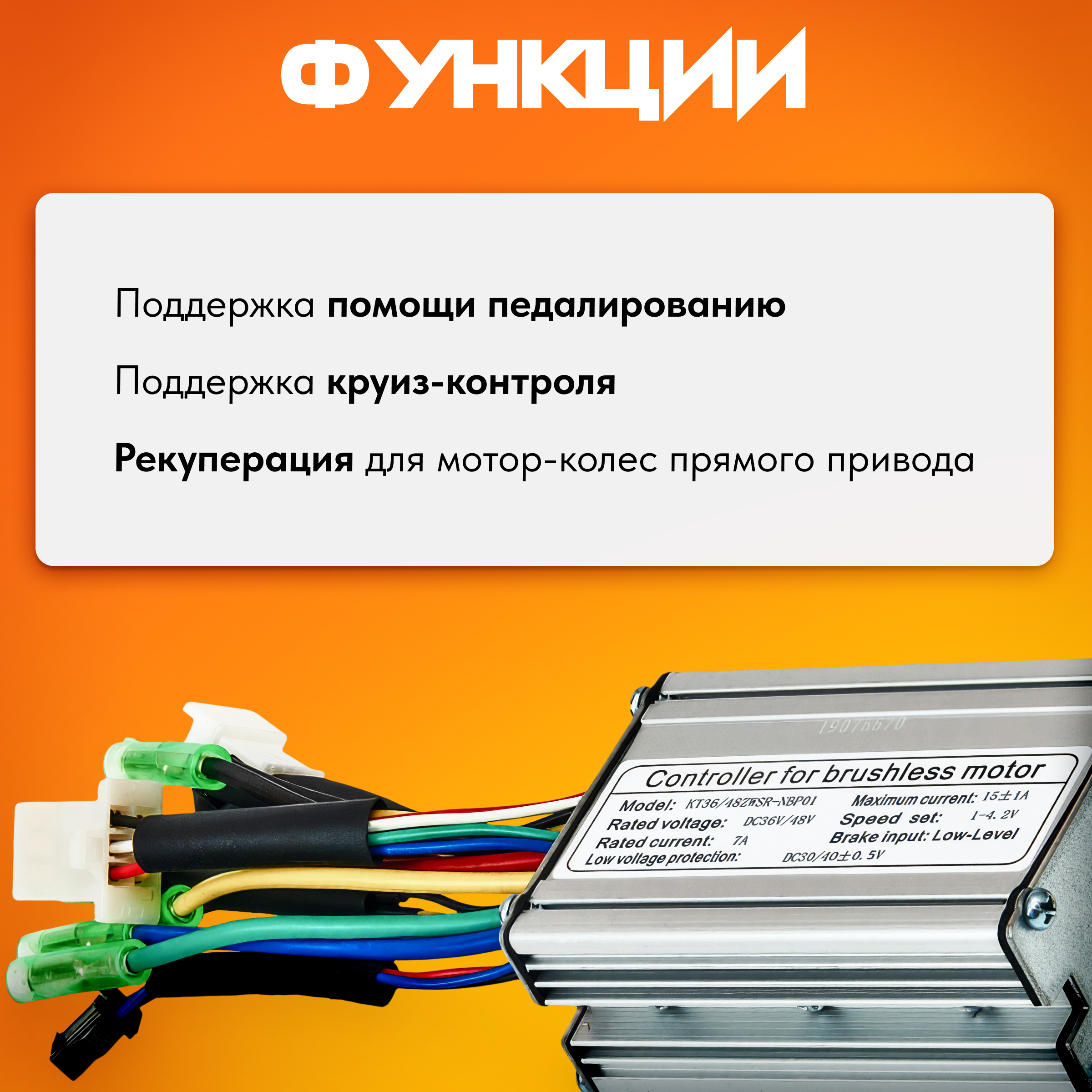 - Функция рекуперации для мотор-колес прямого привода (у редукторных мотор-колес за счет обгонной муфты нет возможности торможения двигателем).
