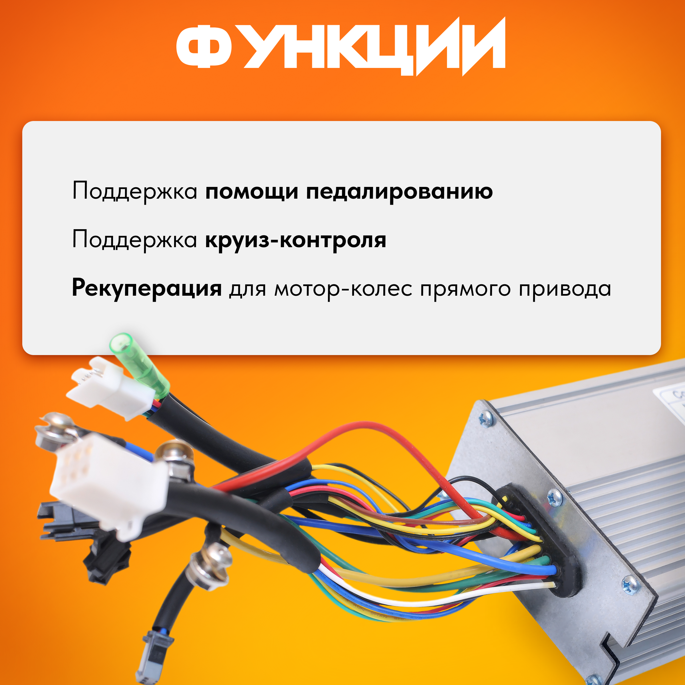 - Функция рекуперации для мотор-колес прямого привода (у редукторных мотор-колес за счет обгонной муфты нет возможности торможения двигателем).