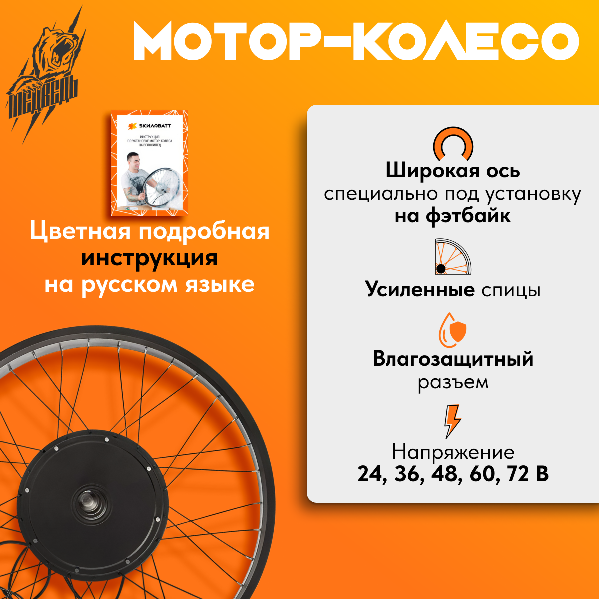 Если вы собираете мощный электрический фэтбайк, который позволит вам стартовать со светофора быстрее автомобилей и держаться в потоке машин, установите на него мотор-колесо на 1000 Вт. Оно обеспечит динамичный разгон и движение со скоростью 55 км/ч. Данное мотор-колесо предназначено для установки на место заднего колеса и подходит для сборки электровелосипеда как с задним, так и с полным приводом.