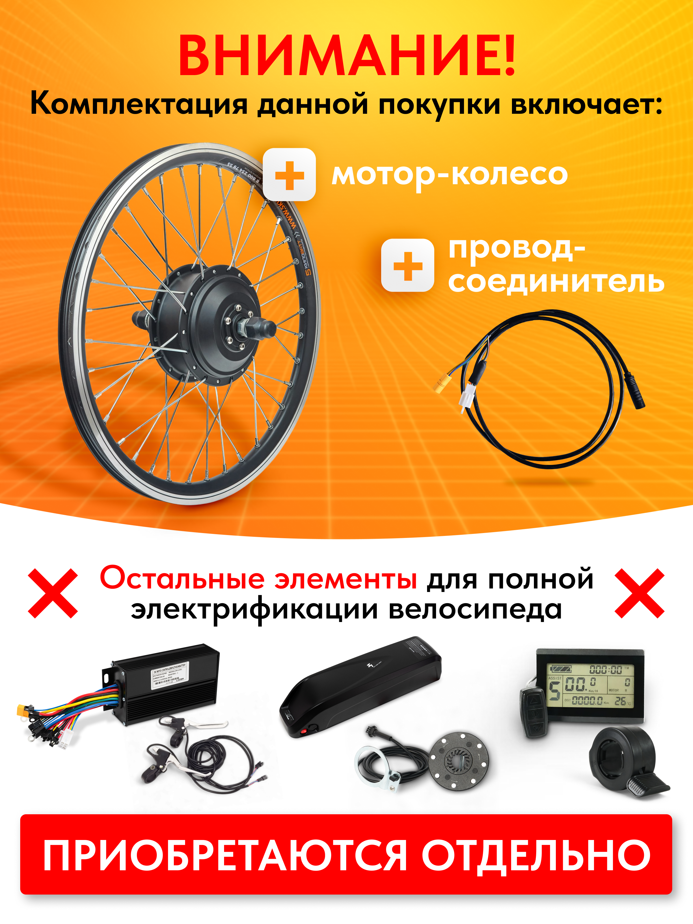 - Усиленные обода и спицы. Спицы увеличенного диаметра и двойные усиленные обода. Восьмерки вас не побеспокоят, даже при максимальной загрузке, при спрыгивании с бордюров, дорожных неровностях и других сюрпризов жесткой эксплуатации. В наличии имеются мотор-колёса всех стандартных размеров (20", 24", 26", 27,5", 28-29").