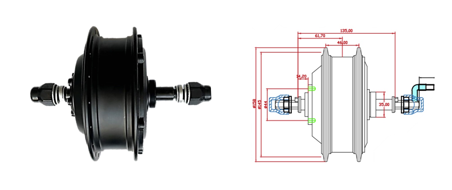 Данное мотор-колесо устанавливается с двумя усилителями дропаутов.