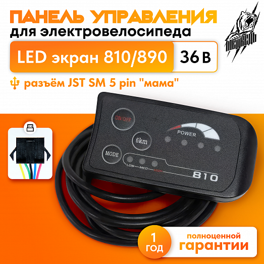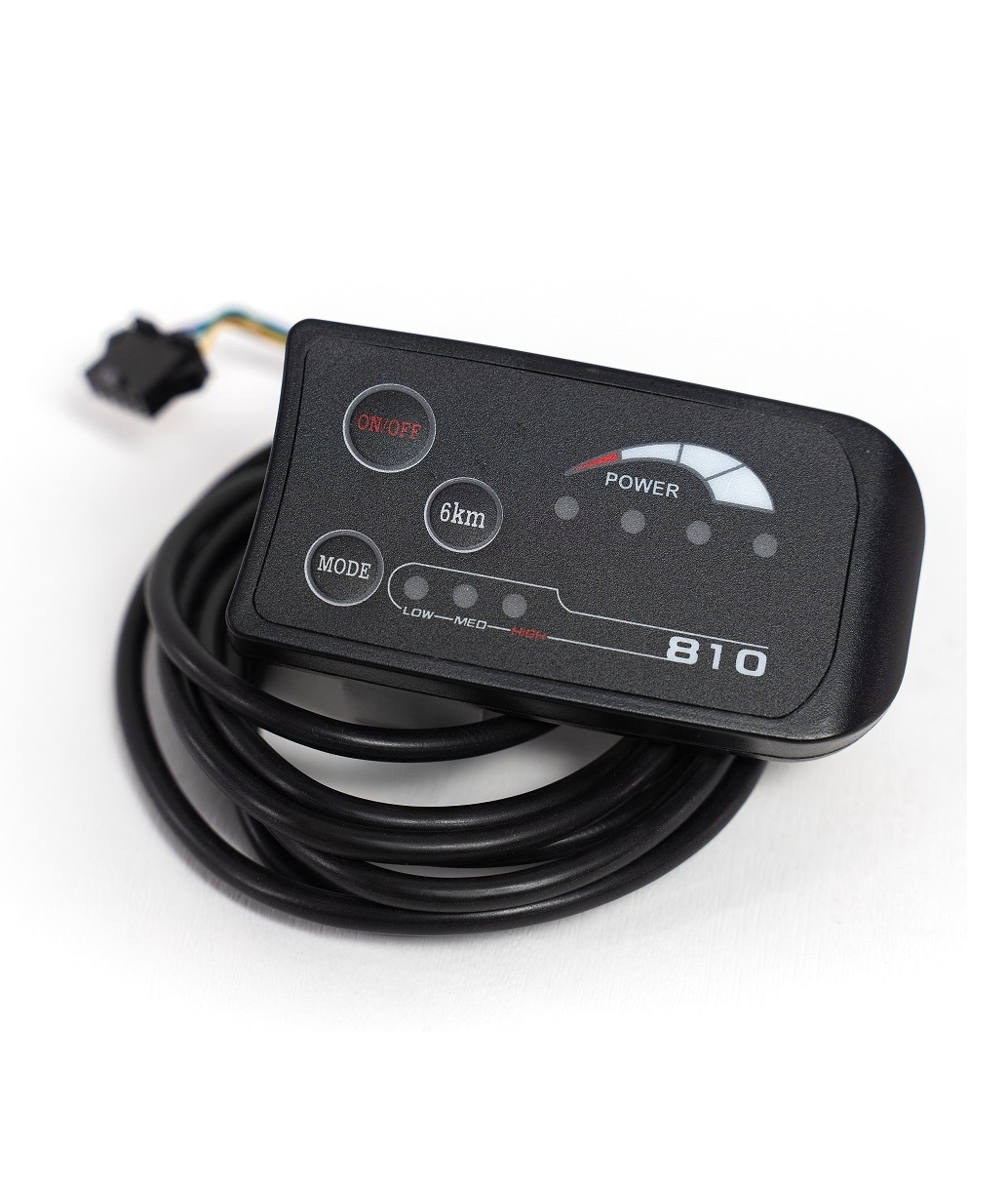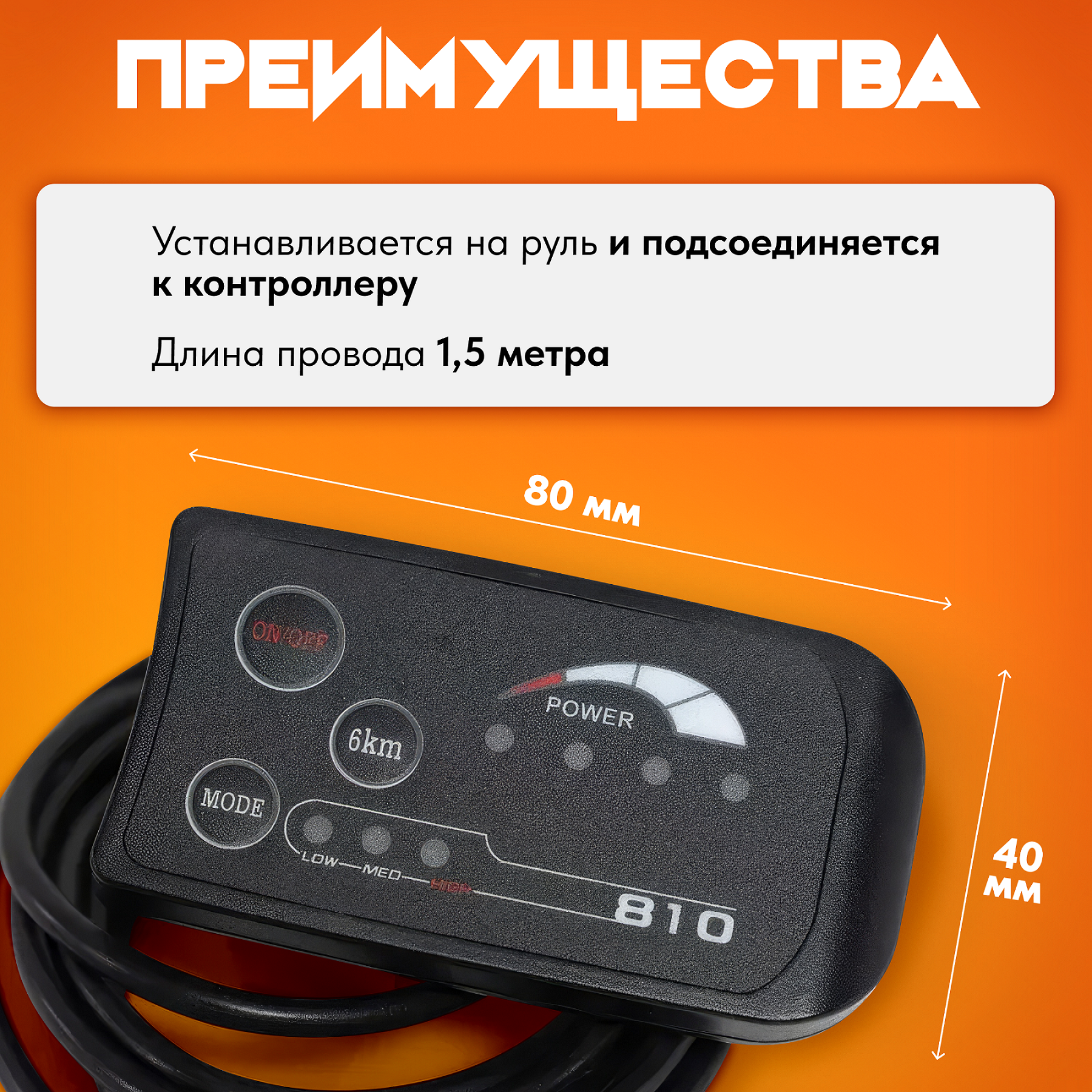 Панель управления подходит для электронаборов с напряжением 36 вольта, устанавливается на руль и подсоединяется к контроллеру.